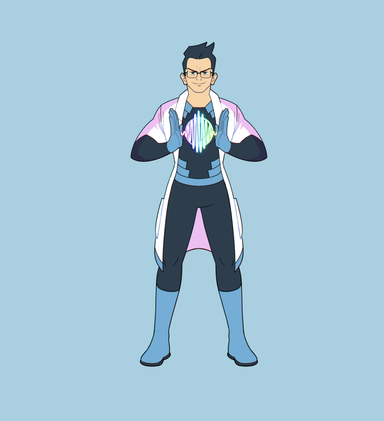 Supernova, an enigmatic scientist-engineer, harnesses cosmic crystals to power their suit, which emits up to five laser beams (EUV, DUV, VIS, NIR, MIR). With ultrafast reflexes and adaptive abilities, they master nonlinear laser technologies, protecting the world.